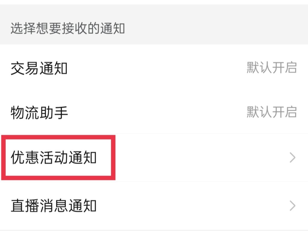 3.在消息接收设置界面中点击“优惠活动通知”。