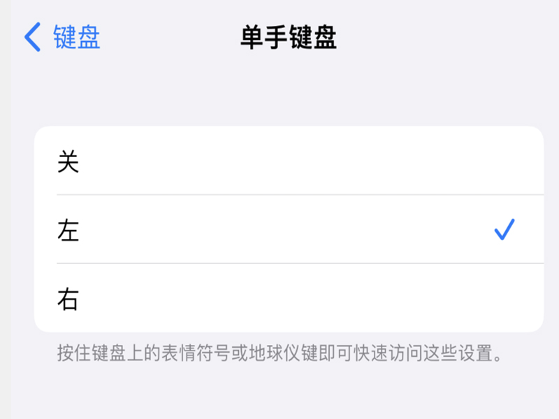 3、点击“单手键盘”按钮,根据习惯勾选左或者右的单手键盘即可。