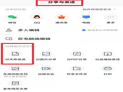 3、点击下方的“分享”按钮,选择“以文件发送”。