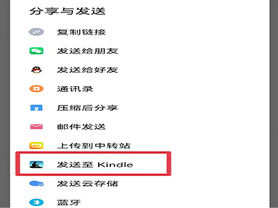 4、在弹出的窗口中点击“发送至Kindle”,点击“发送”按钮,文件会存在Kindle图书馆中。