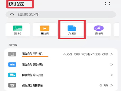 1、打开文件管理软件,切换到“浏览”页面,点击“文档”。
