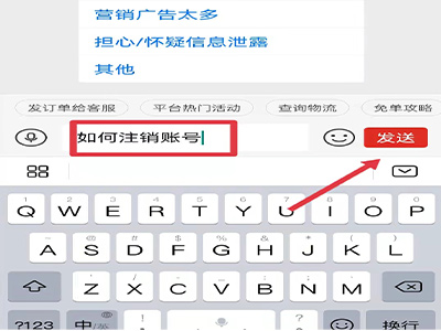 3、在搜索框输入“如何注销账号”,点击“发送”。