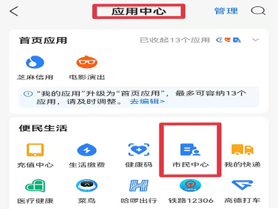 1、打开支付宝app,点击“更多”进入应用中心页面,打开便民生活下的“市民中心”。
