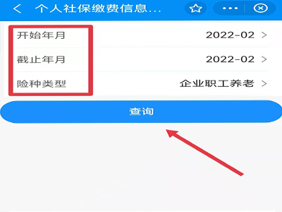 4、选择险种类型,如“企业职工养老”,确认后点击“查询”,即可查看企业养老保险的缴费信息。