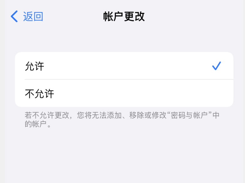 3、把“账户更改”设置为“允许”即可。