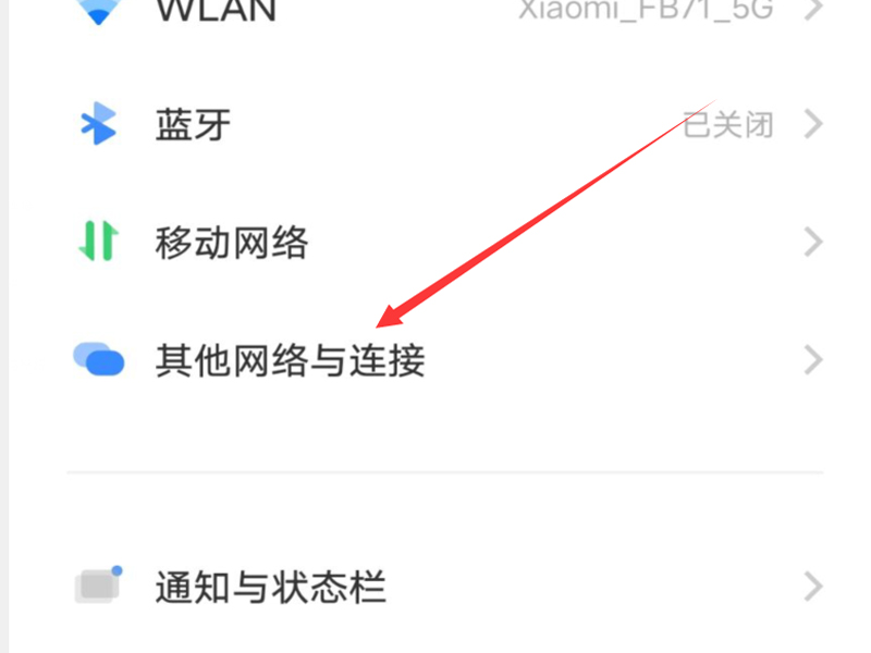 1、打开手机的设置,点击“其他网络与连接”按钮,进入其他网络与连接的页面。