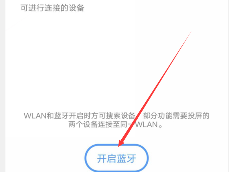 3、点击“开启蓝牙”搜索电视机设备进行投屏。