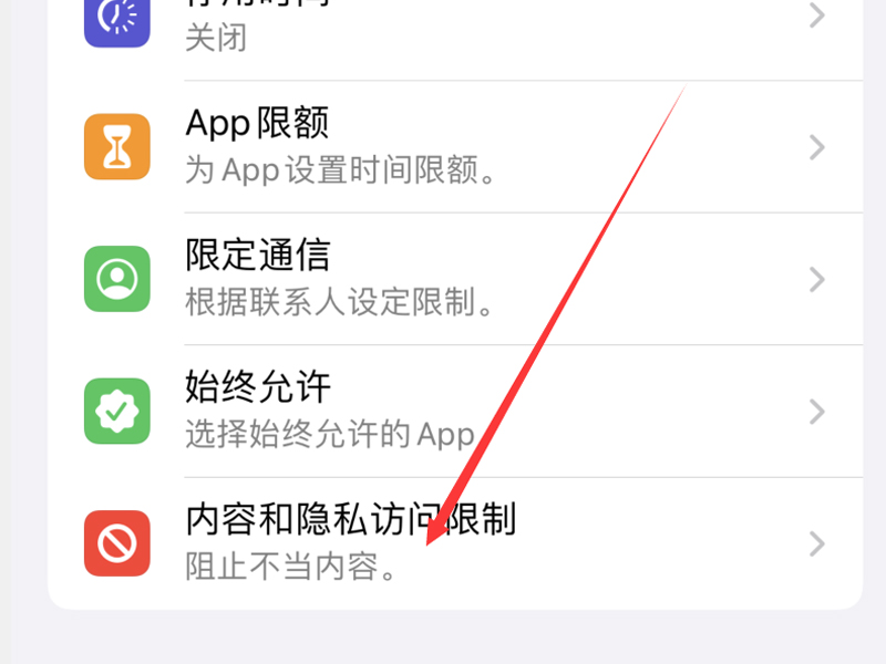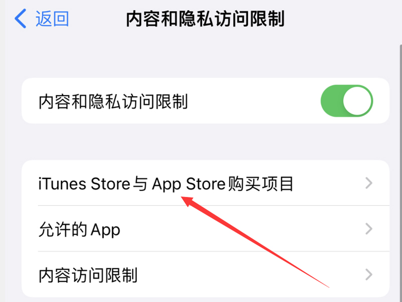 2、点击“内容和隐私访问限制”按钮,进入内容和隐私访问限制的页面。