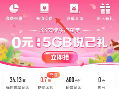 1、打开中国移动app,在主页中点击“充值交费”,进入页面。