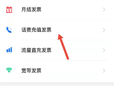 3、进入页面后,在列表中选择“话费充值发票”选项,点击进入。