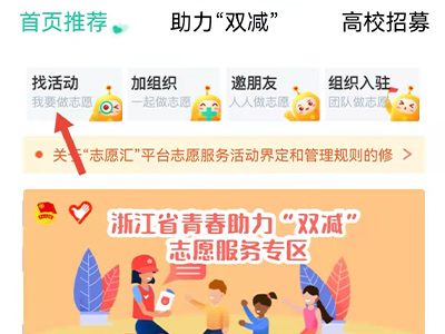 志愿汇时长需要参加活动刷取,志愿汇APP是一款为志愿者提供服务的软件,平台里汇集了大量的公益组织,在志愿汇中刷取时长的具体操作方法如下: