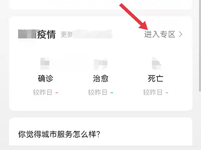 3、进入页面后,找到疫情栏,点击“进入专区”,进入页面。