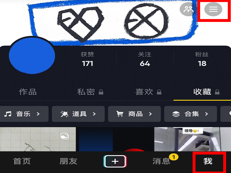 1、打开抖音,点击进入我的界面,再点击右上角的“三条横线”,进入功能栏界面。