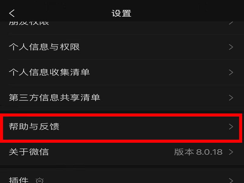 2、进入“设置”界面后,点击“帮助与反馈”。