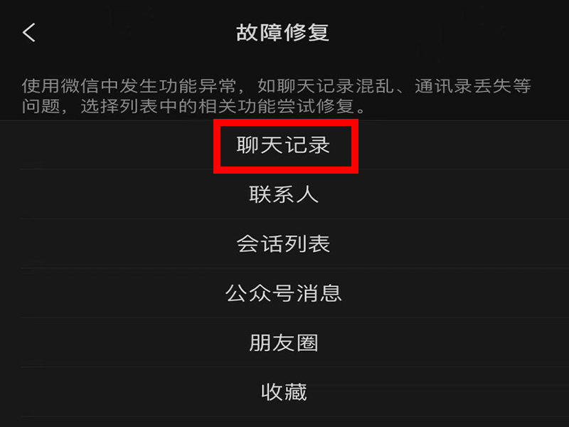 5、进入“故障修复”界面后,进行聊天记录的修复即可。