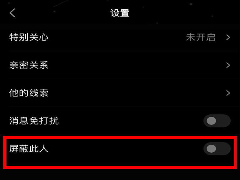 3、进入“设置”界面后,点击“屏蔽此人”即可。
