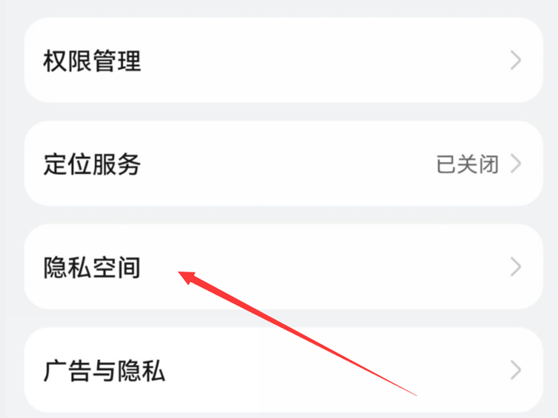 2、点击“隐私空间”按钮,进入隐私空间的设置页面。