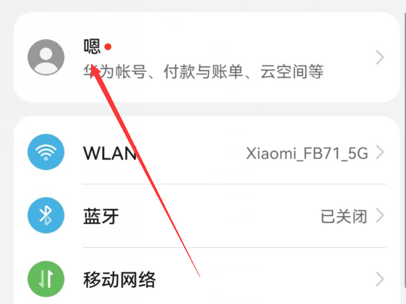 1、打开手机的设置,点击首行的个人头像,进入账号中心页面中。