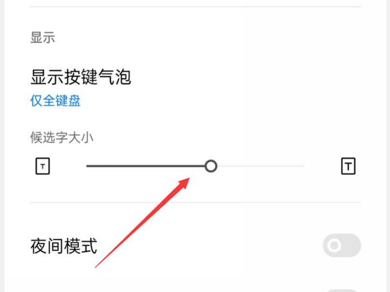 4、拖动调节条可以设置键盘的候选字大小。