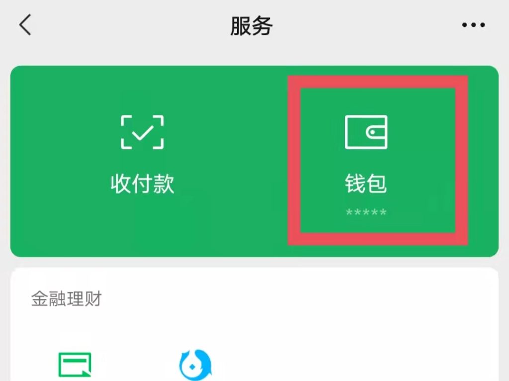 1、打开微信APP,点击“我”、“服务”、“钱包”,进入界面。