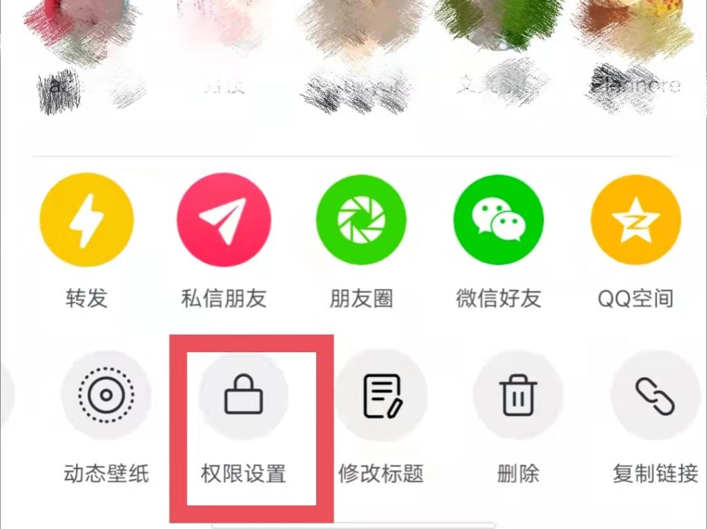 2、点击视频右侧的三个小点,左滑该界面最下方的功能键,找到“权限设置”,并点击进入界面。