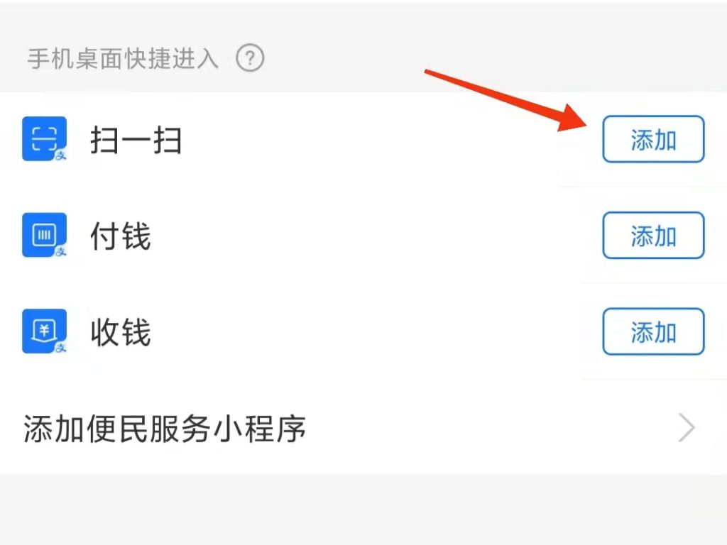 5、点击“添加”,即可把支付宝扫一扫放到桌面。