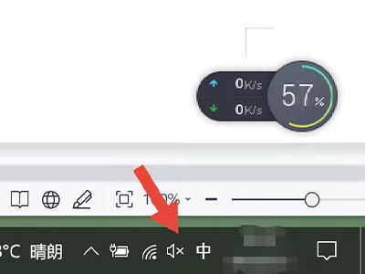 1、打开电脑,在主页的右下角点击扬声器图标,进入页面。
