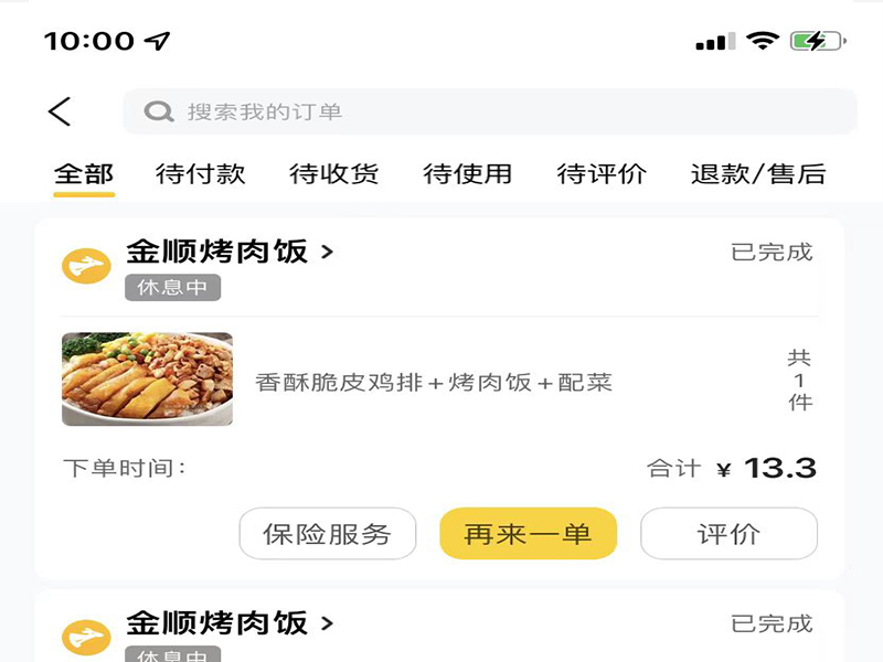 2、进入“订单”界面后,就可以查看点过的外卖了。
