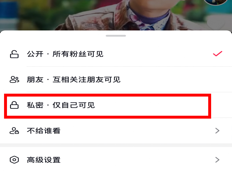 抖音无法直接关闭分享转发的功能,只能把单个视频作品设置成为私密作品。将抖音视频设置私密的具体操作方式如下: