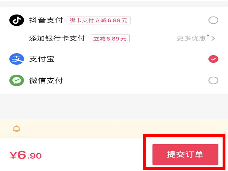 1、打开抖音,进入付款界面,点击右下角的“提交订单”,进入“确认支付”界面。
