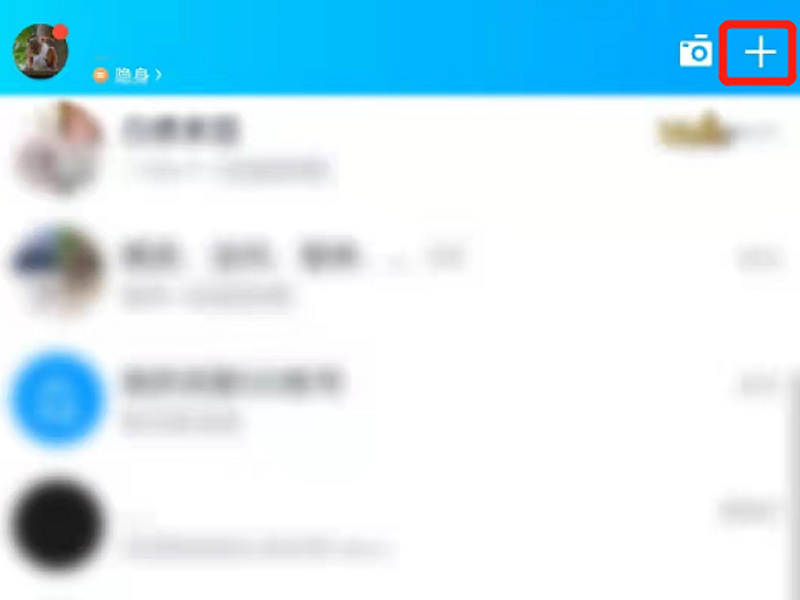 1、打开手机QQ软件,点击右上角“+”号标志。