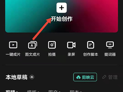 1、打开剪映app,在主页中点击“开始创作”,选择视频后进入页面。