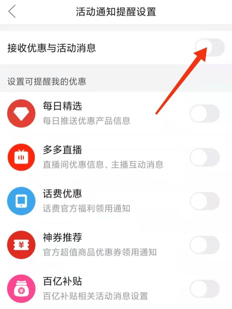 3、在消息接收设置中进入“优惠活动通知”,关闭“接收优惠与活动消息”即可。