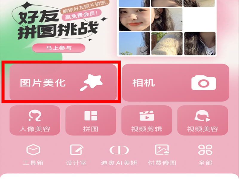 1、打开美图秀秀,点击“图片美化”,进入“图片选择”界面。