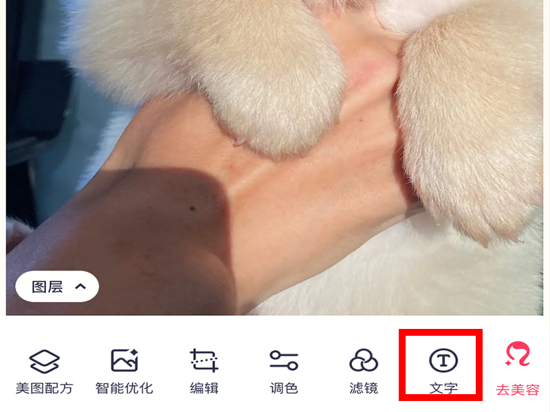 2、选择好图片后,进入“图片编辑”界面,并点击“文字”,进入“文字输入”界面。