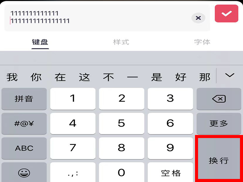 3、输入好文字后,将文字光标移动到要换行的位置,再点击“换行”即可。