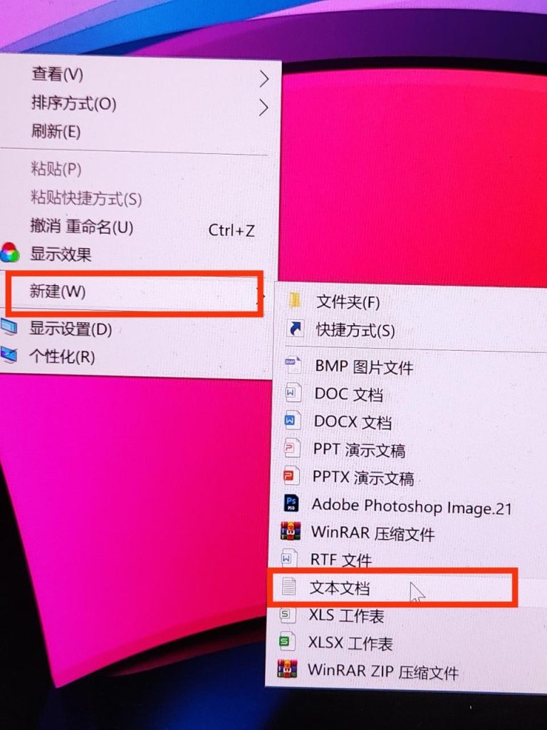 2、在电脑桌面上,鼠标右键新建聊天记录“文本文档”,并命名。