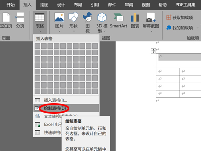 4、单击“插入”->“表格”->“绘制表格”,在表头的第一个合并单元格中画一条斜线,并输入时间和星期。