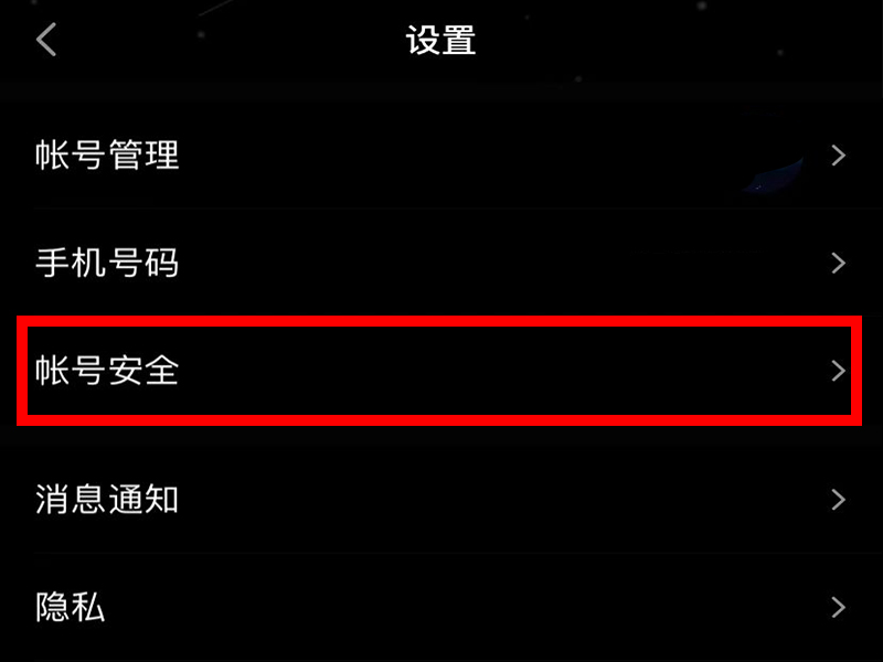 3、进入“设置”界面后,点击“账号安全”,进入“账号安全”界面。