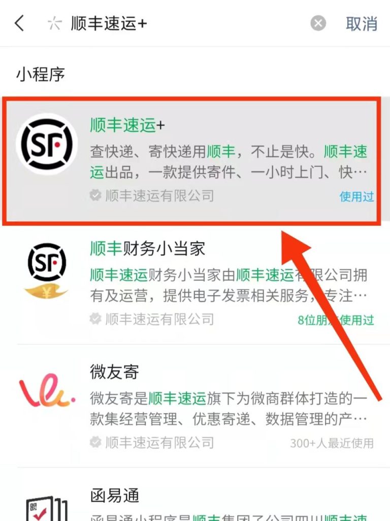 2、在搜索小程序界面输入“顺丰速运”并点击进入。