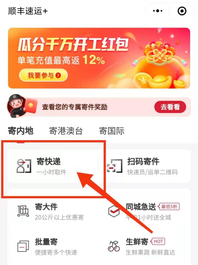 手机上寄快递可以在APP客户端、或者在支付宝、微信小程序等方式进行下单,例如顺丰快递,在微信小程序下单具体操作如下: