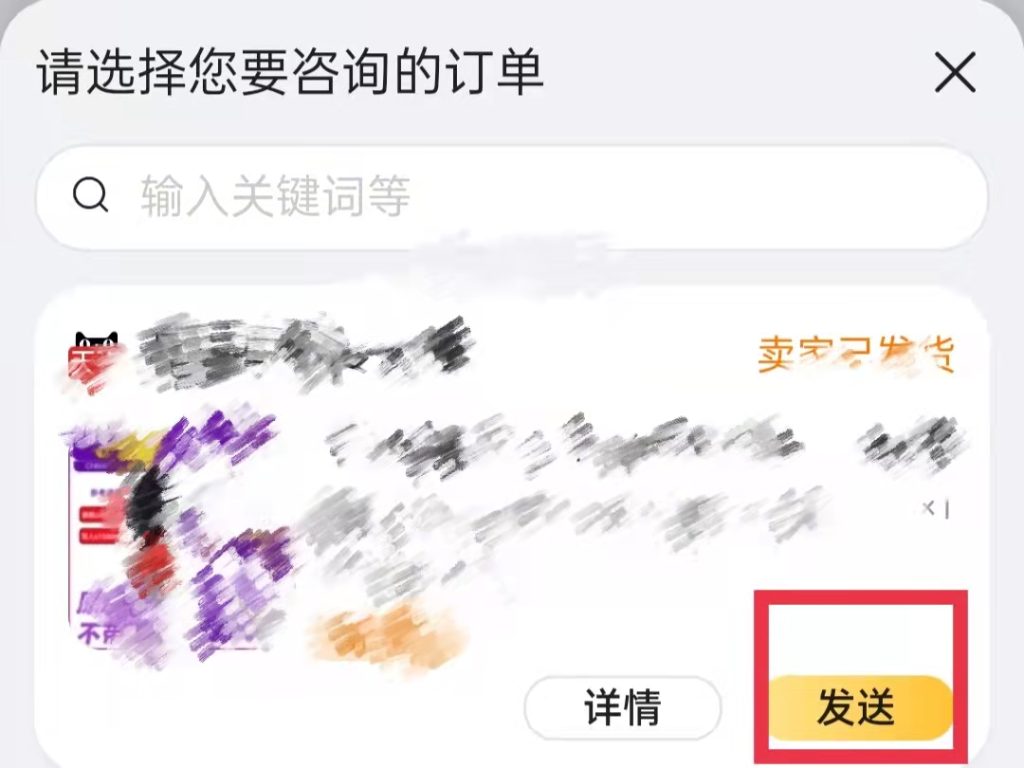 4.在弹出的商品中找到自己要催的商品,点击发送即可。