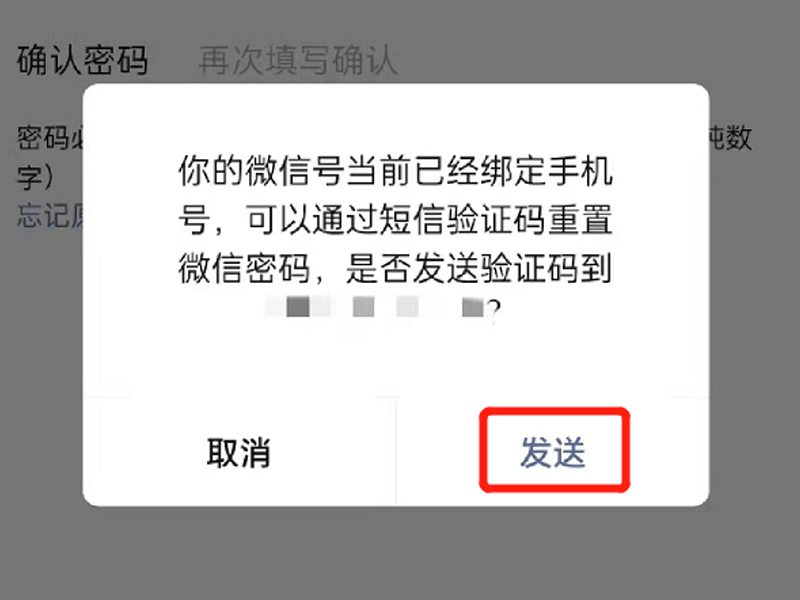 4、点击“忘记原密码”,再点击“发送”,填写短信验证码,即可对微信密码进行重置。