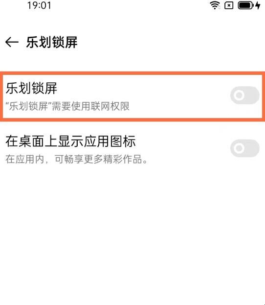 3、开启【乐划锁屏】右侧的开关即可。