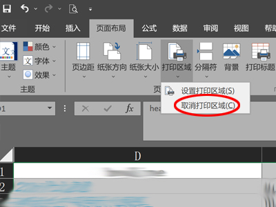2、单击“打印区域”->“取消打印区域”,即可以将打印区域解除。