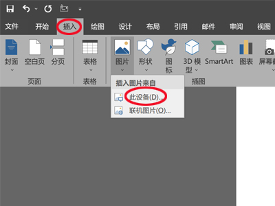 1、打开word文档,单击“插入”-“>图片”->“此设备”,将图片插到word文档中。