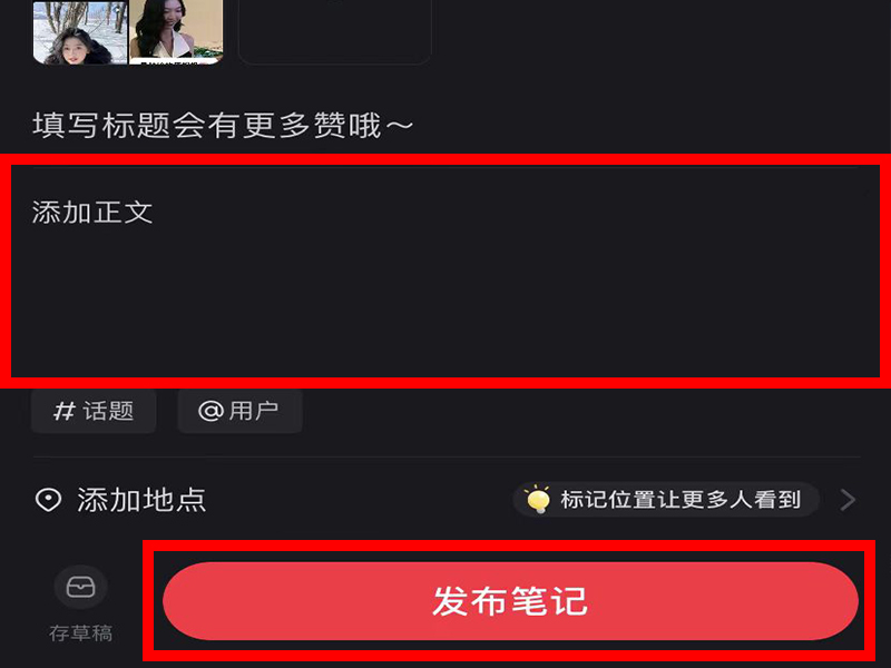 3、进入“笔记编辑”界面后,输入想要发布的笔记,再点击“发布笔记”即可。