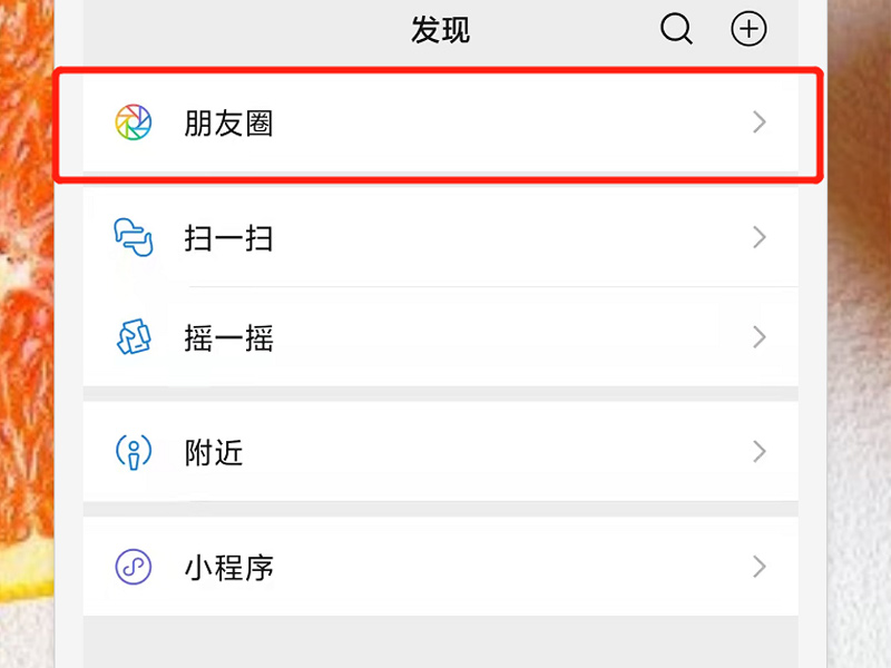 1、打开微信app,点击下方的发现,再选择上方的朋友圈。