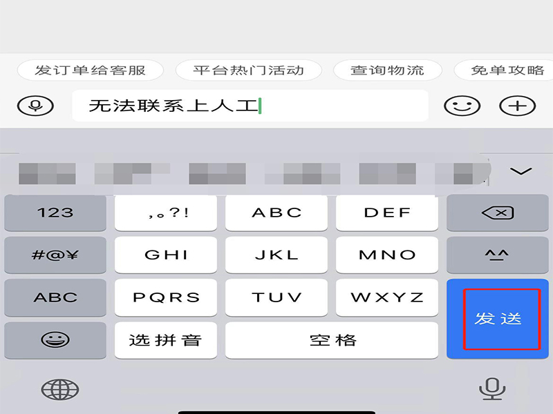 5、在拼多多官方客服页面上,输入问题,并点击“发送”提交,即可得到进一步解决。