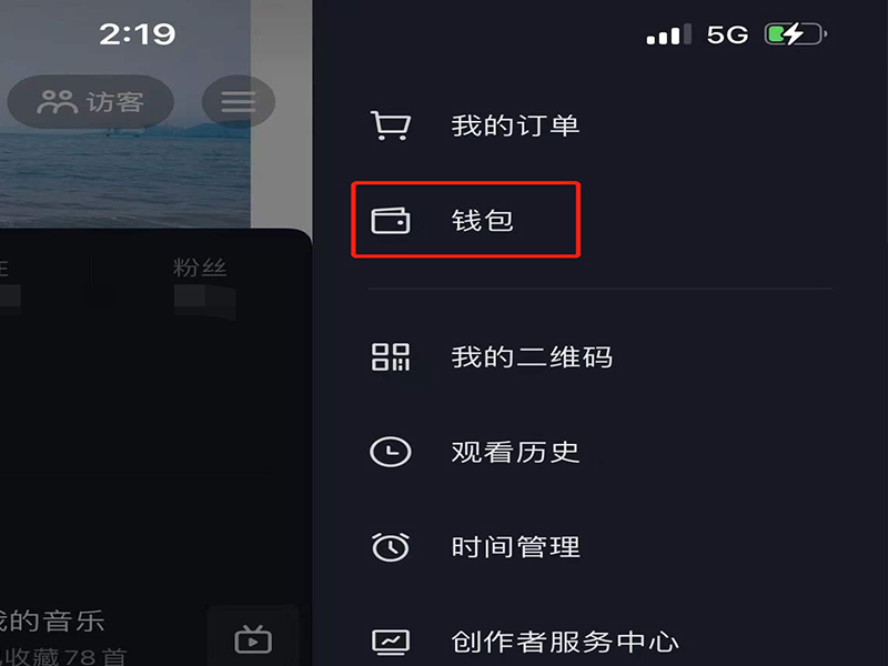 2、在抖音工具栏上,点击“钱包”,进入钱包页面。